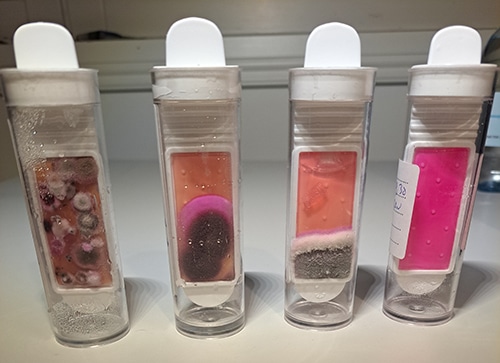 Mikrobi/hometutkimus Kolmessa näytteessä on voimakasta homekasvua, yksi näyte on puhdas: ei kasvua.